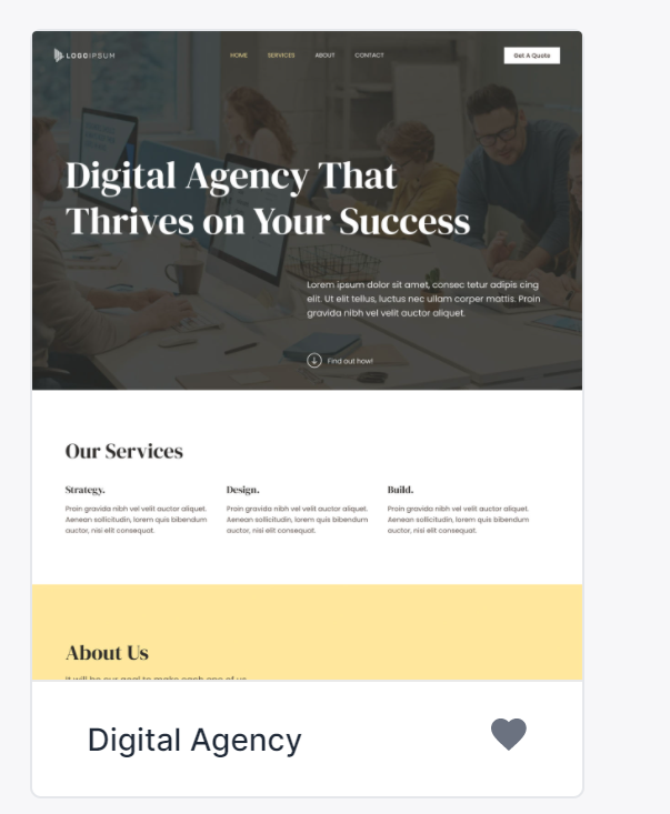 デジタルエージェンシー(デジタル代理店?)。Wordpress を皆さんに紹介する代理店みたいなものなので、サイトのテーマ的にも丁度いいですね。ではこのデザインをクリックします。